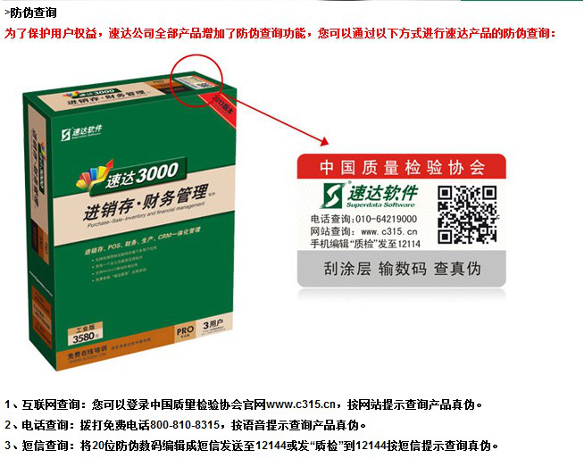 2、 购买速达软件的价格提示。作为软件本身单体的利润值是很高的,但是利润率并不高,而购买速达软件的时候如果产品售价低于市场零售价格的5折时,请注意产品的正规性。特别是有些只有几十元,1、2百元的那肯定是盗版无疑了。广大用户不要因为便宜而购买了得不到保障的盗版软件。
