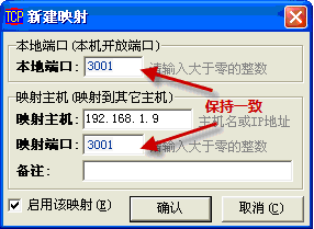 将“启用该映射”选项大勾,点击[确认]则端口映射设置完成。