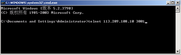 l 如要检测端口映射设置是否成功,在“运行”中输入“cmd”命令,进入命令行模式后,请输入“Telnet<空格><外网IP地址><空格><端口号>”,按<回车>;如:telnet 113.209.108.10 3001(如下图)