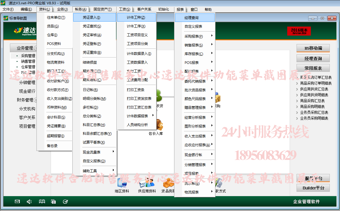注意:以下描述为速达3000PRO版本功能截图,速达3000BAS比速达3000PRO少了很多细节功能,BAS没有的功能跟报表,详情咨询拨打热线:18956083629